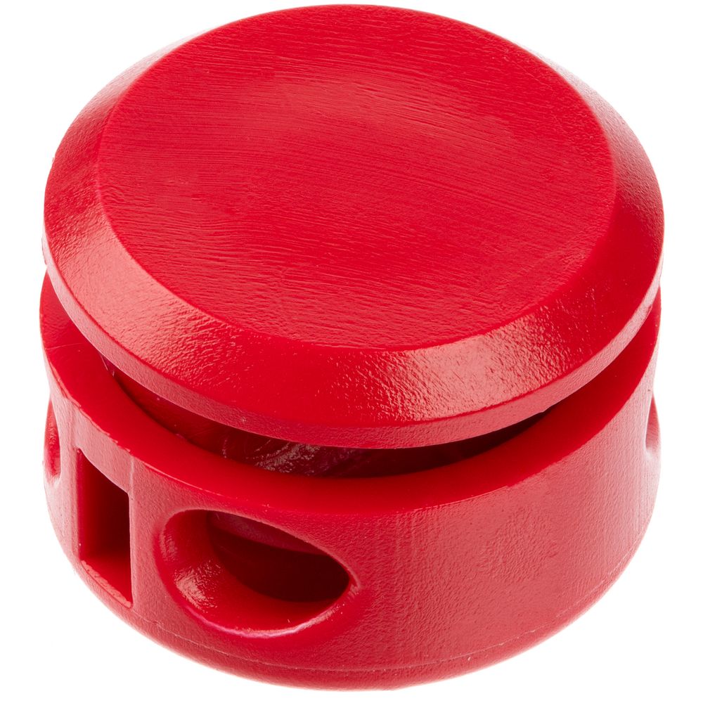 Для установки необходимо нажать на кнопку фиксатора и пропустить шнур через отверстие. Подходит для круглых шнуров и резинок диаметром до 0,5 см.