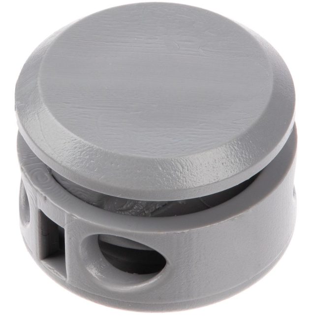 Для установки необходимо нажать на кнопку фиксатора и пропустить шнур через отверстие. Подходит для круглых шнуров и резинок диаметром до 0,5 см.