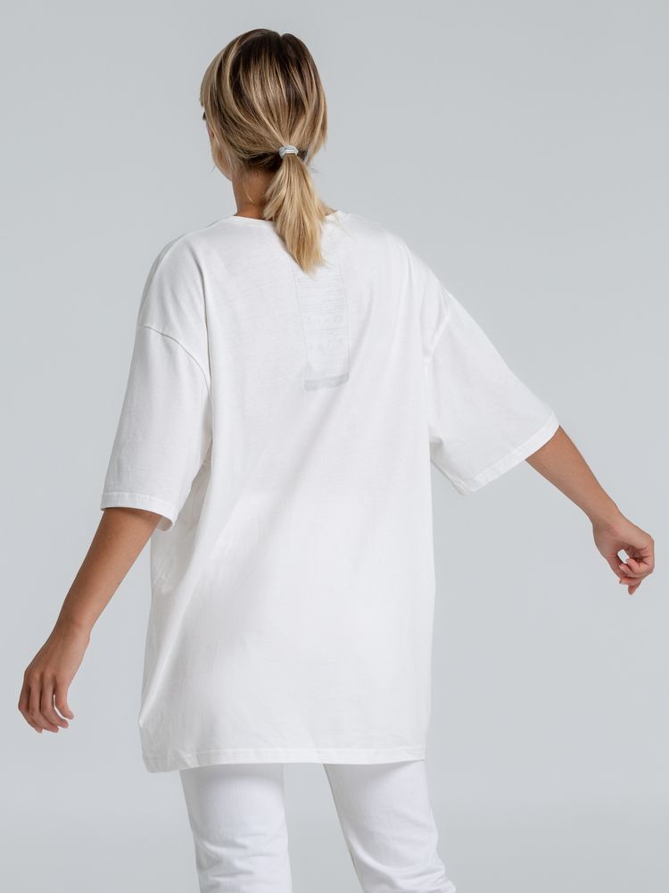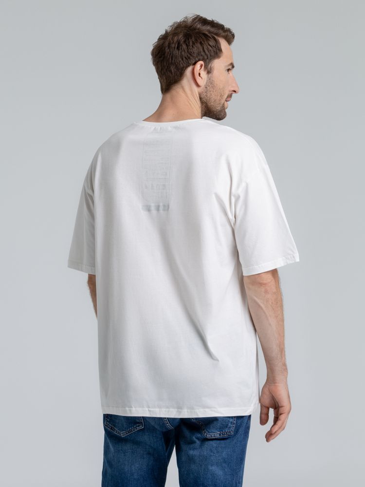 Футболка унисекс со спущенным плечом и круглым вырезом, отделанным резинкой.