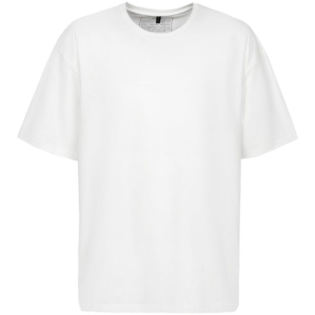 На изнаночной стороне футболки напечатан принт с информацией о бренде и инструкцией по уходу за изделием.