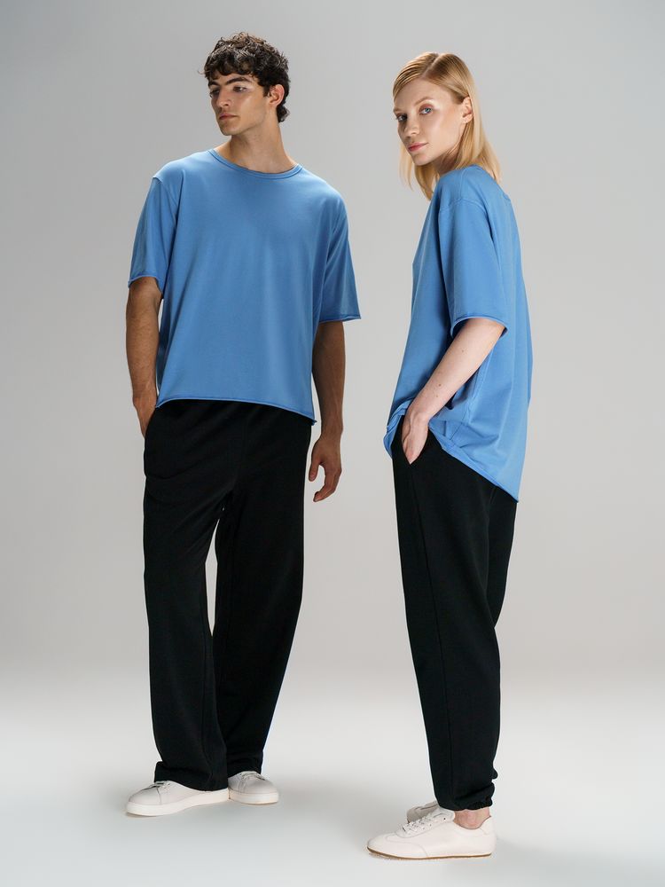 Футболка унисекс свободной посадки Vozduh создана для тех, кто следит за трендами и ценит комфорт. Необработанные края рукавов и низа изделия добавляют ему оригинальности и легкой небрежности, а боковые вставки создают притягательный летящий силуэт.