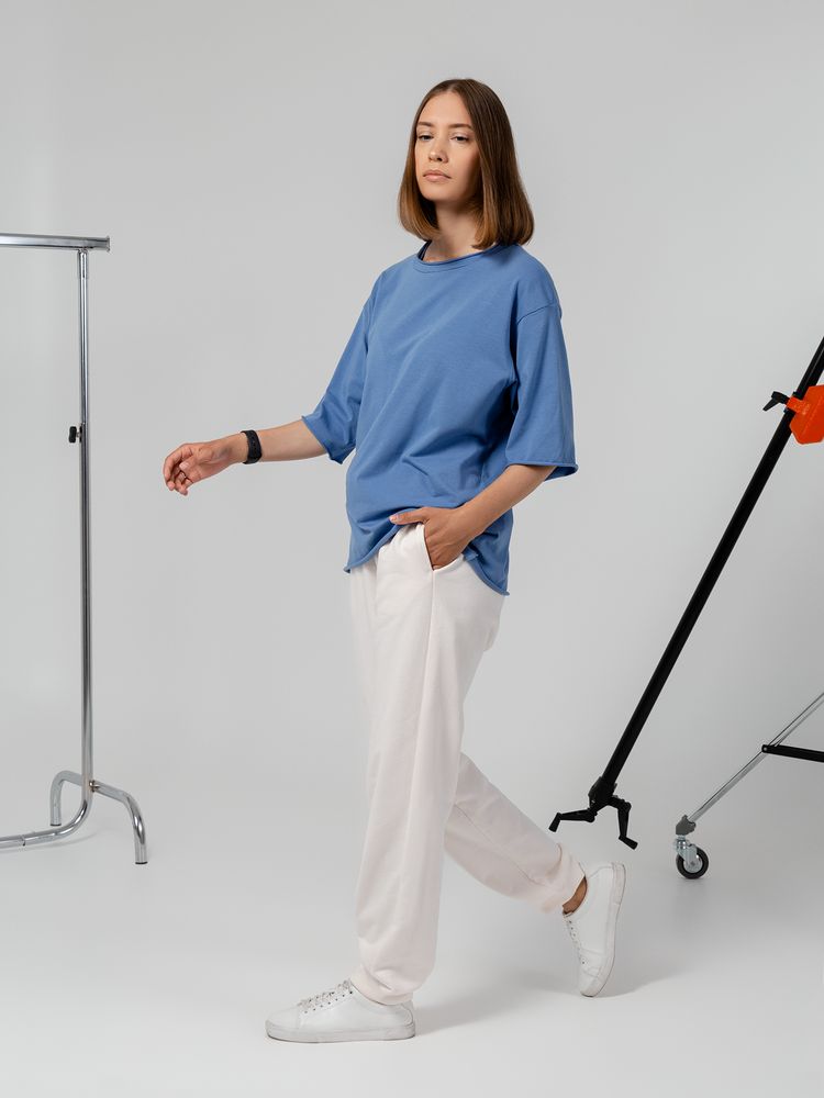 Футболка унисекс оверсайз со спущенным плечом.