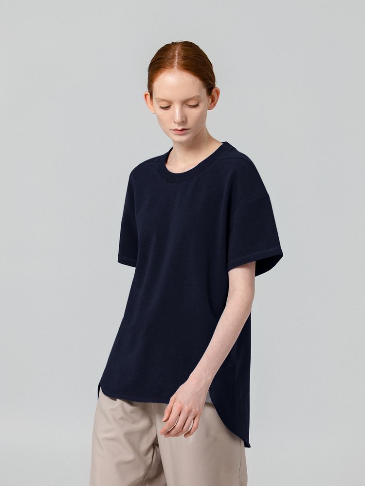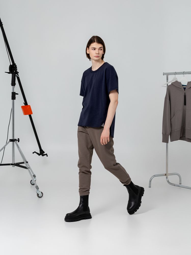 Футболка унисекс свободного кроя со спущенным плечом и смещенными плечевыми и боковыми швами.