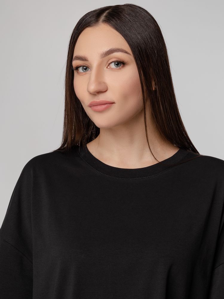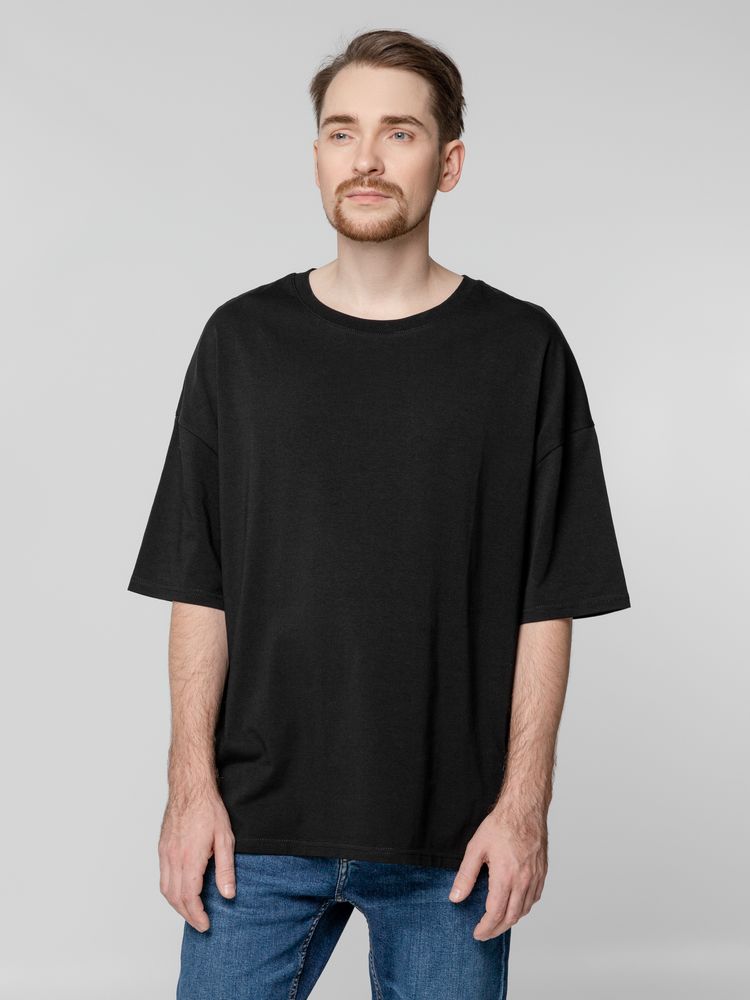 Объемная кроеная футболка с удлиненным рукавом из гребенного хлопка с эластаном не стесняет движений и создает модный расслабленный силуэт.