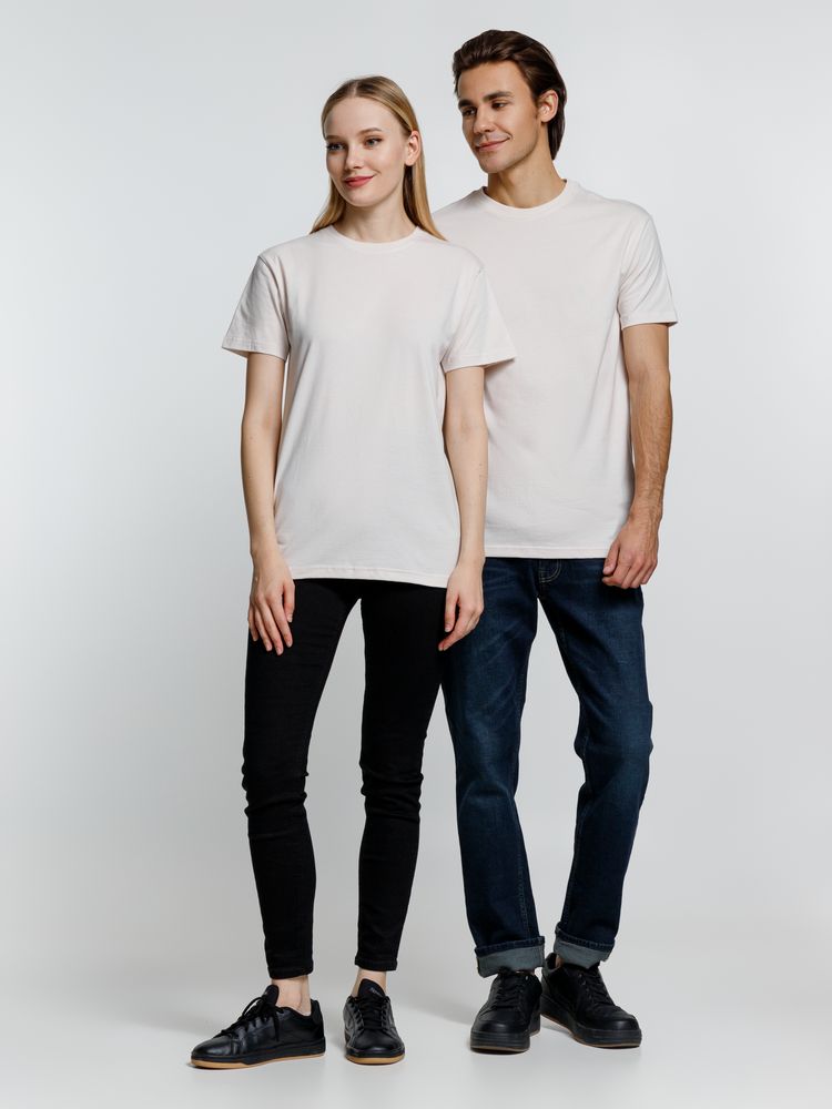 Базовая футболка унисекс прямого силуэта без боковых швов (размеры XS–4XL) или с боковыми швами (размеры 5XL–6XL).