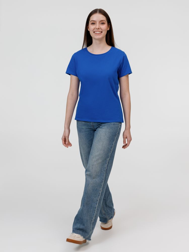 Кроеная женская футболка приталенного силуэта с круглым воротом.