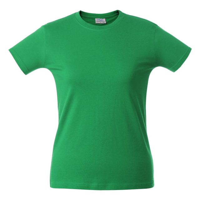 Женская футболка с уплотненными швами на плечах и двойным швом с эластаном. Четырехслойная резинка на воротнике предохраняет его от растяжения.