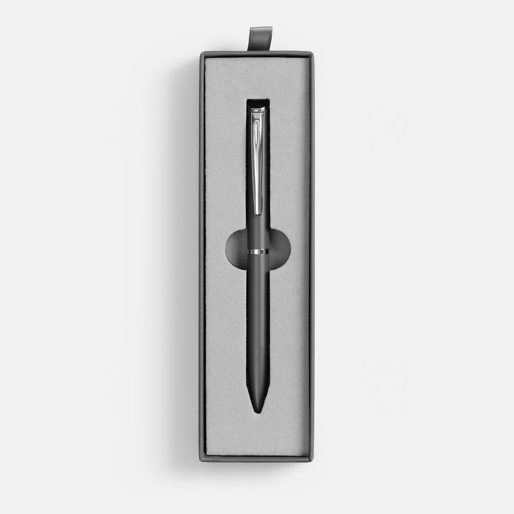 Картонный футляр с покрытием софт-тач с флокированным ложементом для одной ручки.