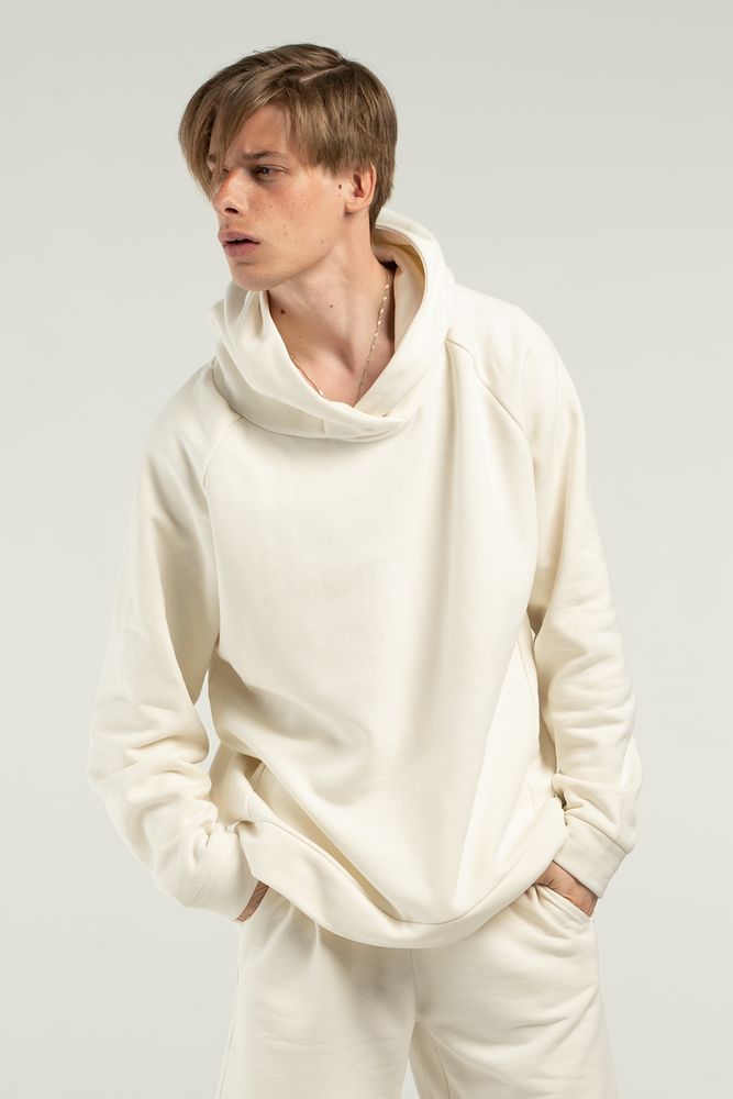 Худи унисекс свободной посадки с рукавами реглан и капюшоном.