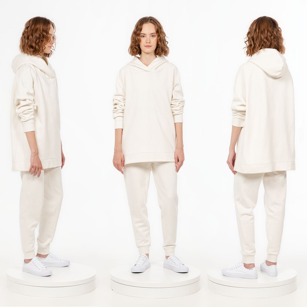 Базовая повседневная одежда актуального покроя в стиле унисекс разработана в рамках единой коллекции и легко собирается в комплекты. Специально спроектированные лекала и технологии пошива открывают простор для любых вариантов кастомизации и нанесения изображений. На видимой части изделий нет лейблов с айдентикой бренда, а название бренда с уходника легко удалить.