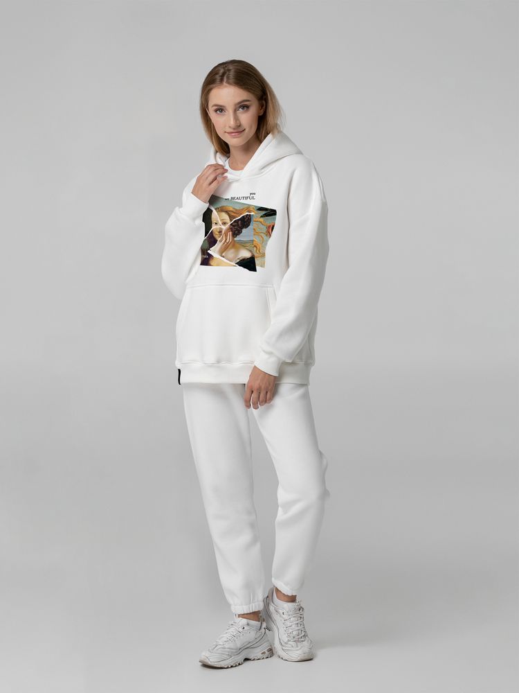 Не родись красивой, а родись в эпоху, когда твоя внешность считается красивой! Оверсайз худи, которое напоминает, что, какими бы ни были стандарты красоты сейчас, главная красота — внутренняя! Поэтому худи с начесом.Худи унисекс со спущенным плечом и карманом-кенгуру.