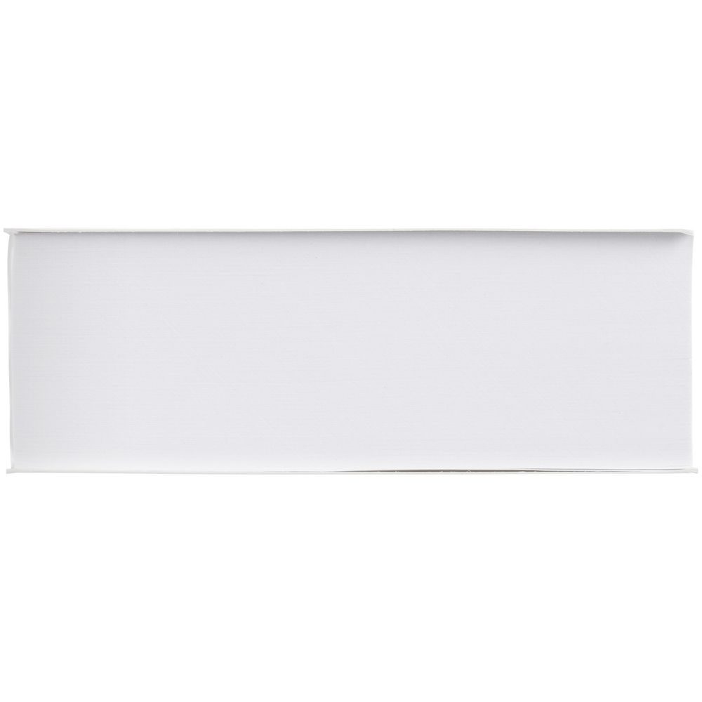 Блок из 300 листов без линовки из бумаги плотностью 80 г/м² на склейке в обложке из дизайнерского картона белого цвета.