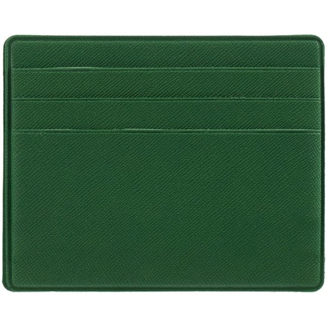 Чехол для карточек из искусственного материала, имитирующего сафьяновую кожу, с шестью отделениями для кредитных карт и одним — для сложенных купюр.