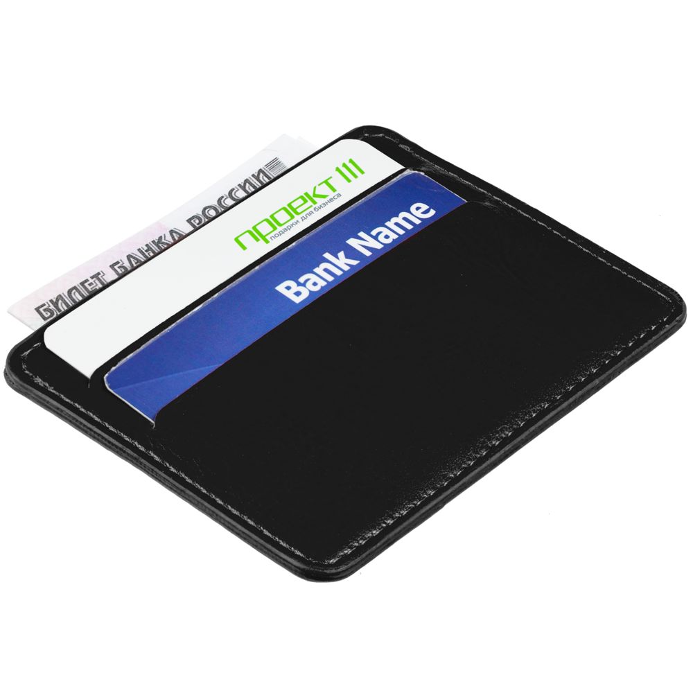 4 отделения для кредитных карт и одно для сложенных купюр.Чехол одинаковый с двух сторон.