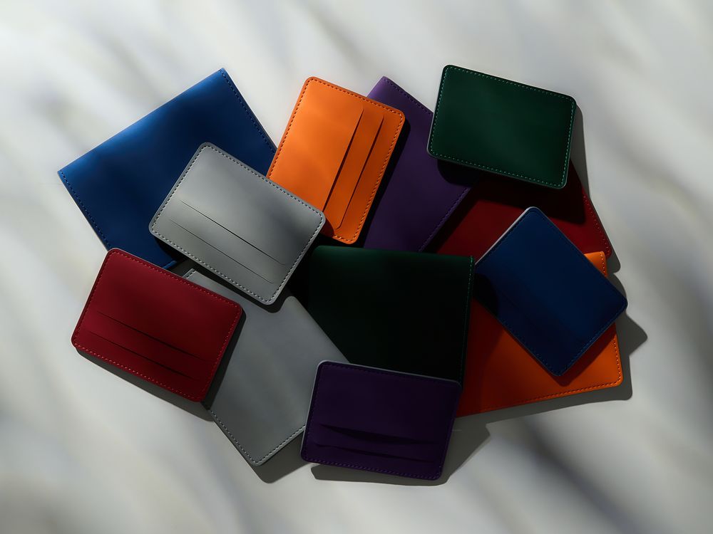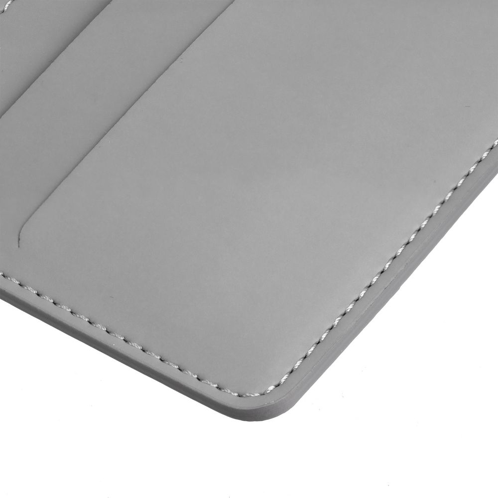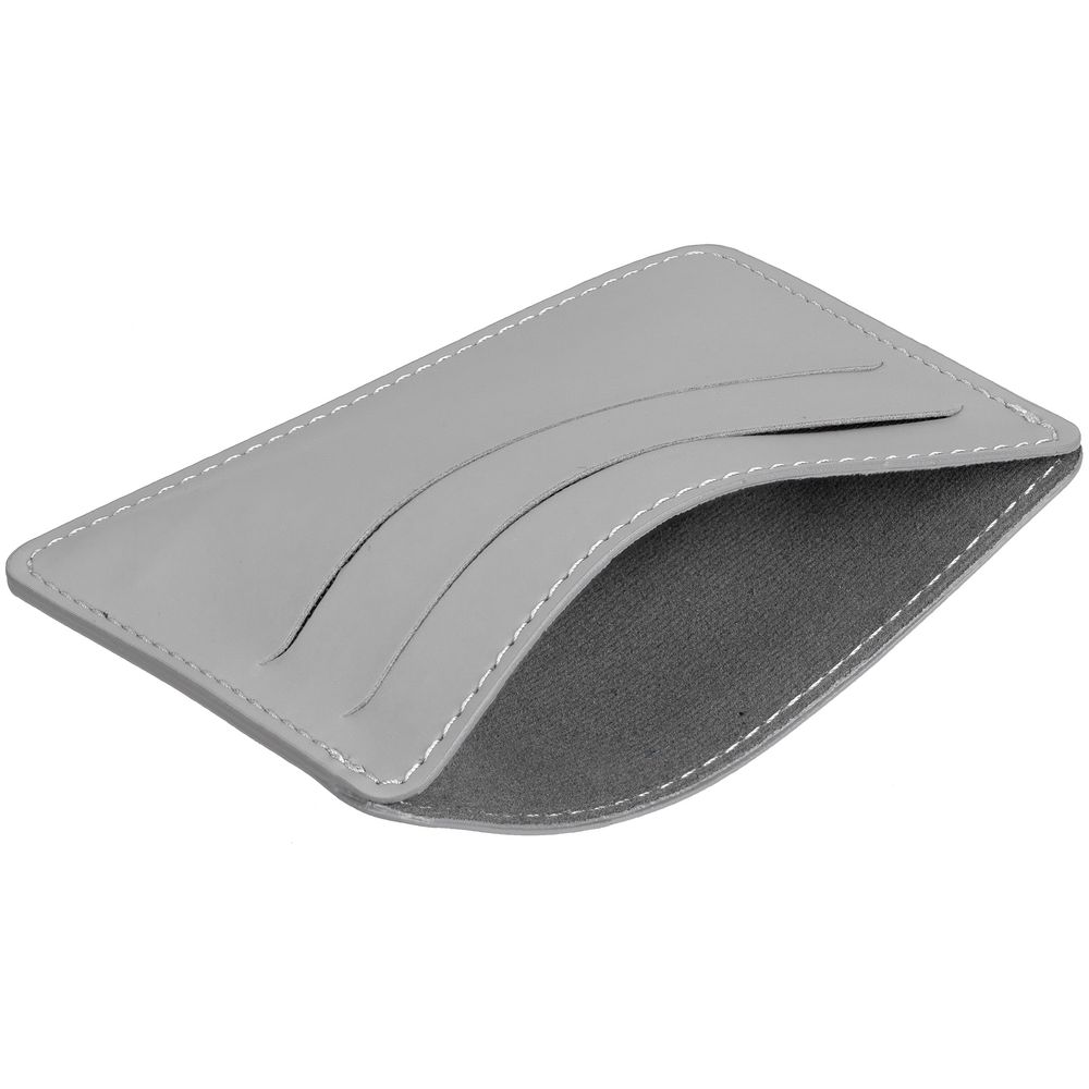 4 отделения для кредитных карт и одно для сложенных купюр.Чехол одинаковый с двух сторон.Упакован в пластиковый конверт.
