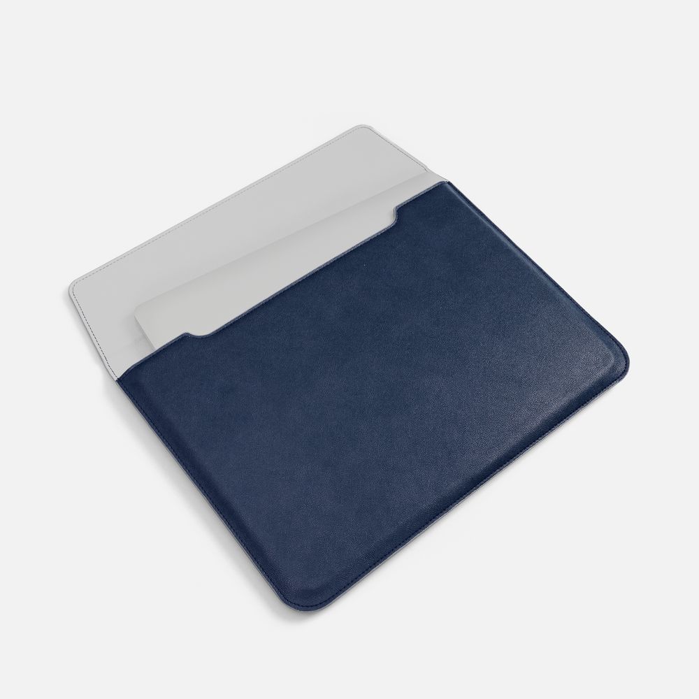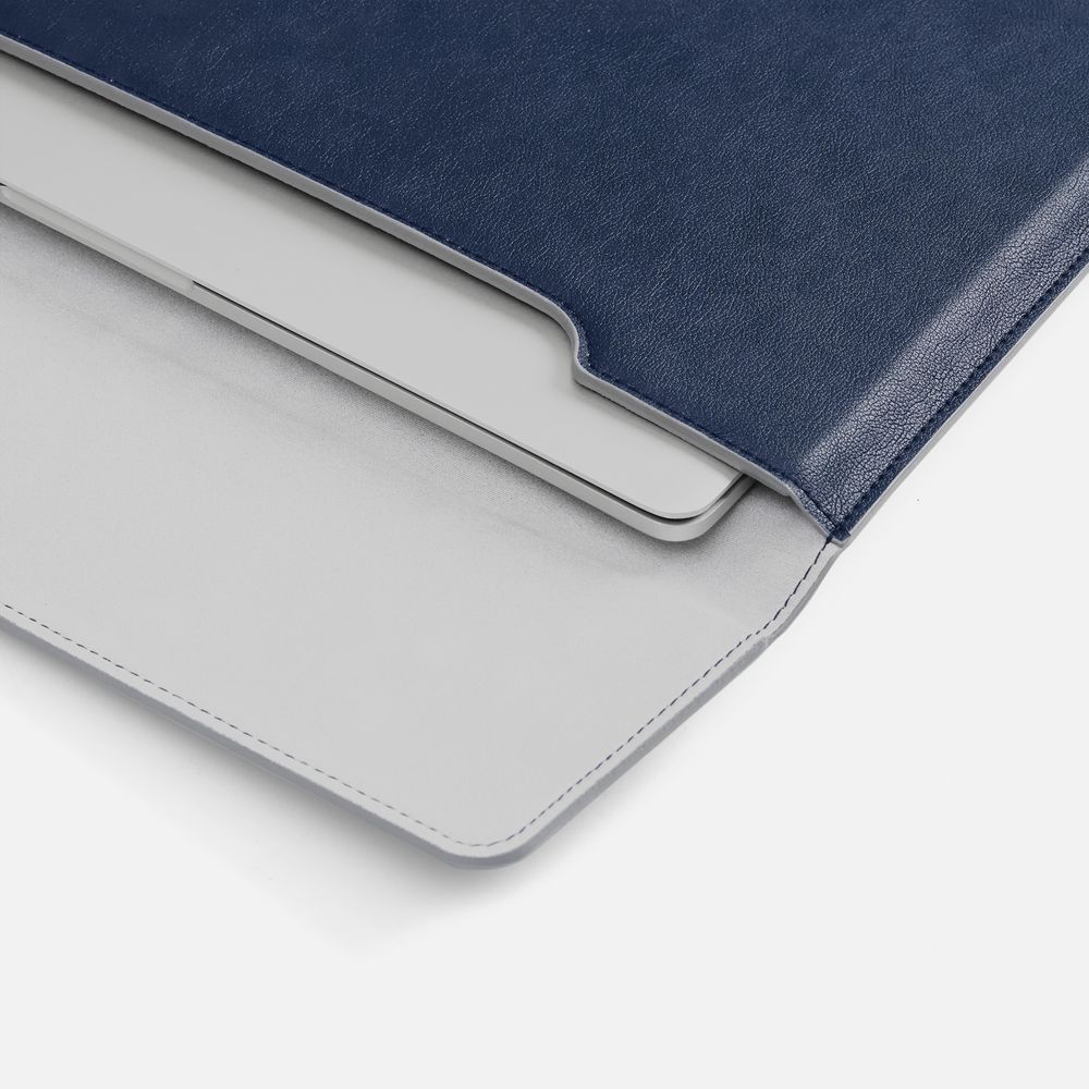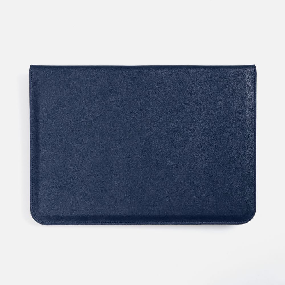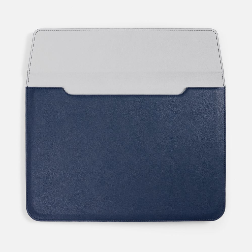 Чехол для ноутбука с диагональю до 15,6 выполнен из материала Petrus, синего цвета, дополнен окрашенным срезом края серого цвета.Можно использовать в качестве папки для бумаг.