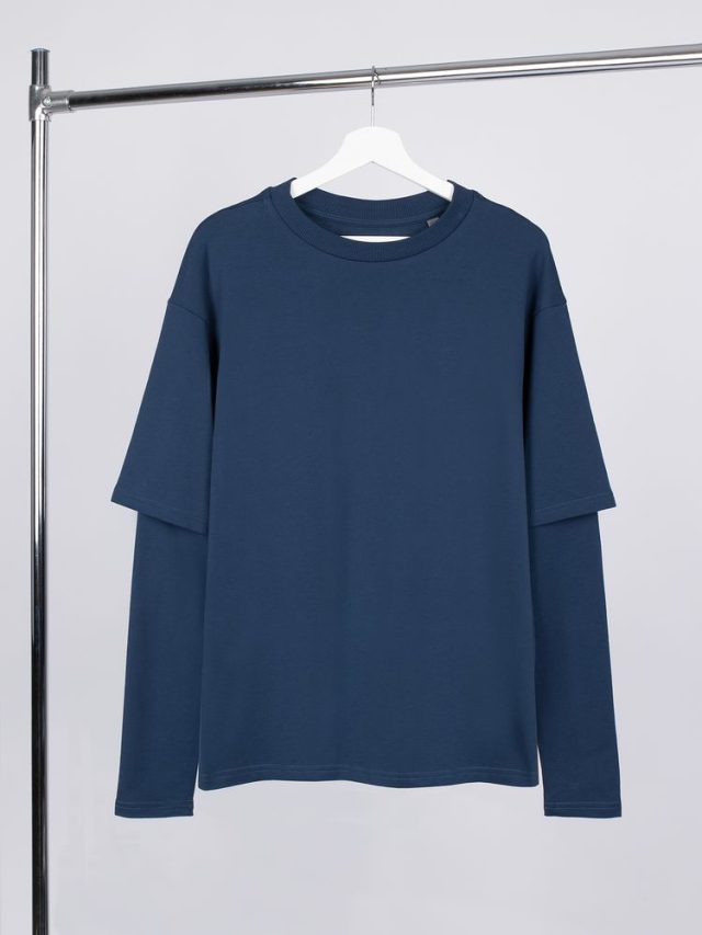 Футболка оверсайз с двойным рукавом Kosmos, темно-синяя