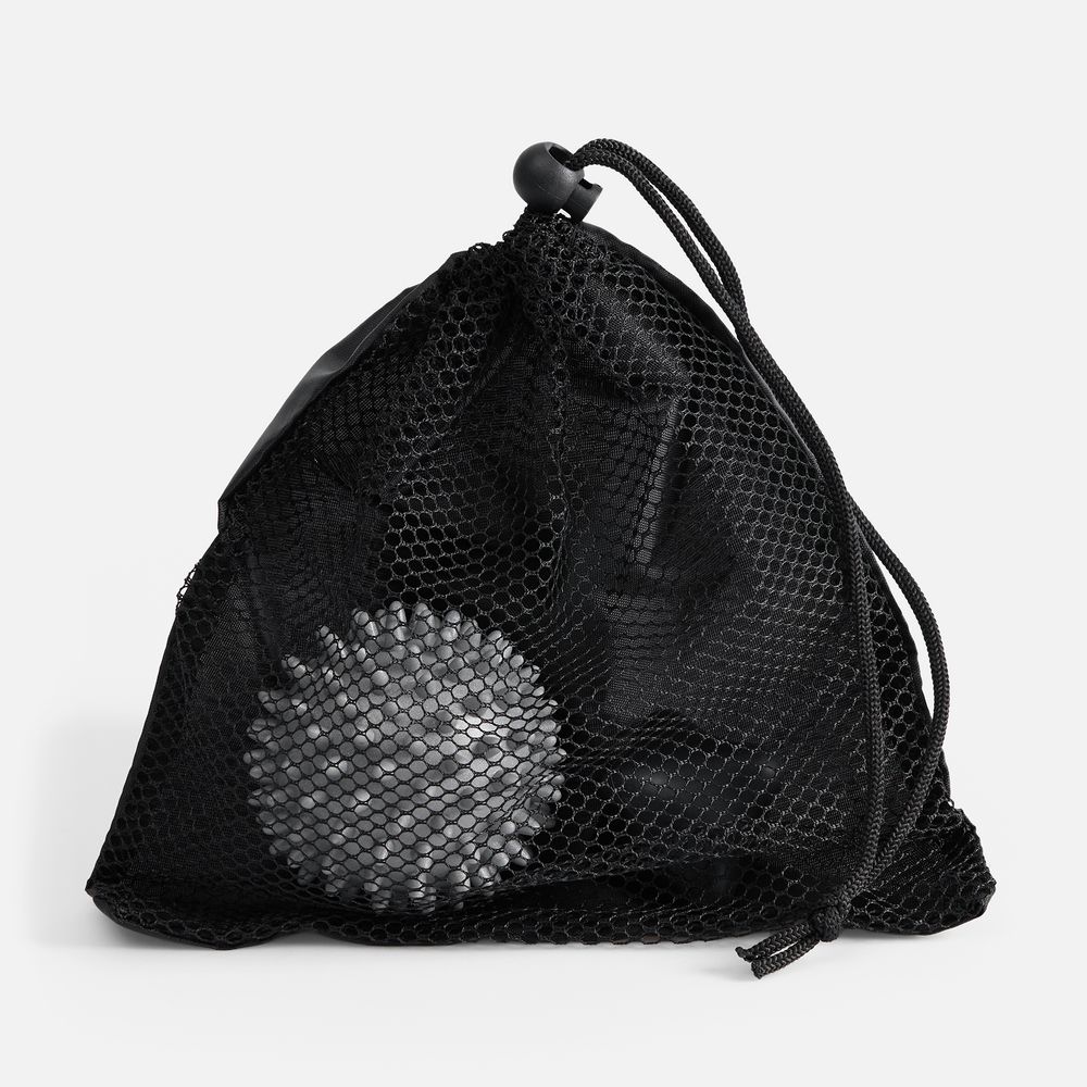 - Фигурный черный мяч предназначен для массажа ладоней и ступней; эффективно борется с триггерными точками.