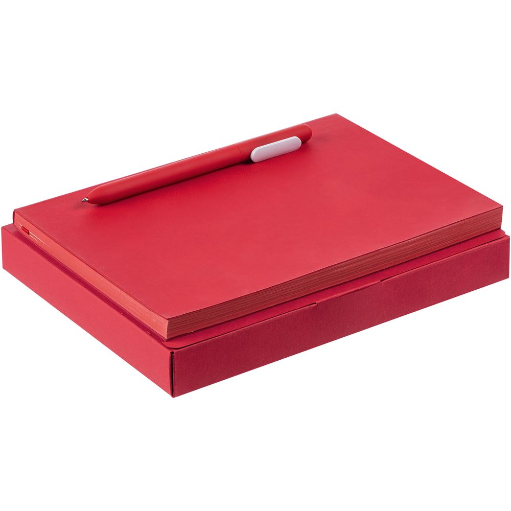 Компактный набор со стильным ежедневником в гибкой обложке с покрытием софт-тач и подходящей ручкой. Все составляющие сложены в самосборную коробку, которая придает набору законченность.