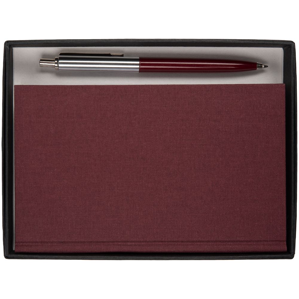 ежедневник — ткань; ручка — металл, пластик; коробка — переплетный картон
