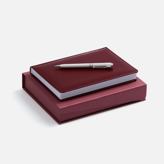 Две самые классические модели в одном деловом наборе: ежедневник Nebraska с «пухлой» обложкой и ручка Raja — кажется, они никогда не выйдут из моды.