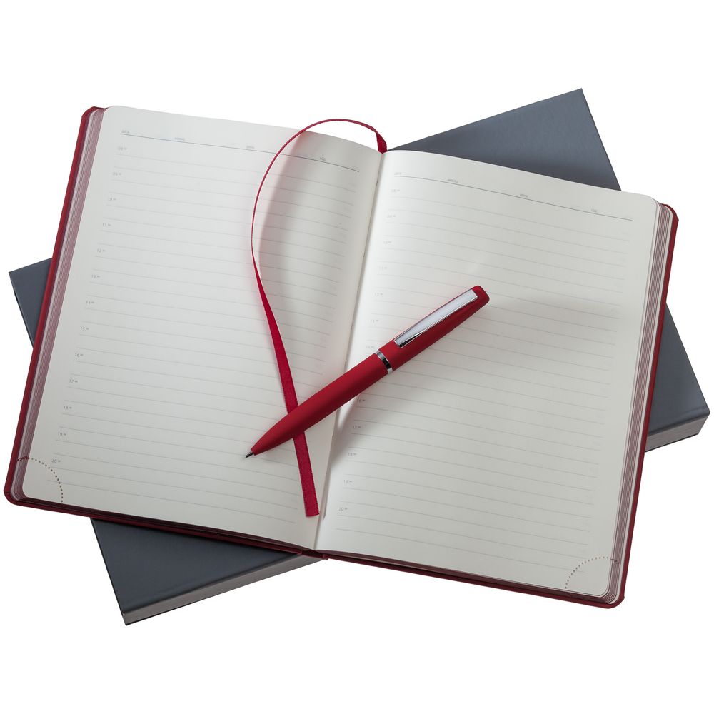 | Материал | ежедневник — искусственная кожа; ручка — металл; покрытие софт-тач; коробка — картон |