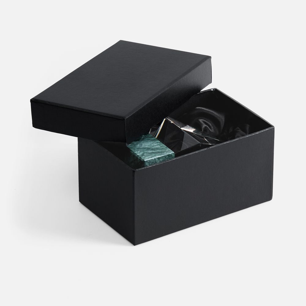 Эффектный камень серпентин благородного оттенка добавляет награде монументальности, а отражения в гранях стеклянного кристалла создают завораживающий визуальный эффект. Награда Picco подчеркнет грани успеха и таланта получателя, а также вдохновит на покорение новых вершин. Благодаря своей форме и исполнению награда Picco займет достойное место в коллекции и украсит любой интерьер.