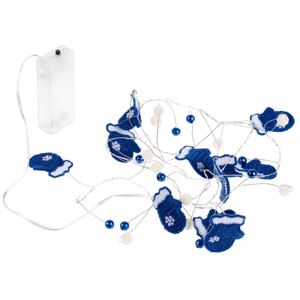12 варежек, бусины и 20 лампочек с теплым светом. Работает от 2 батареек АА (в комплект не входят).