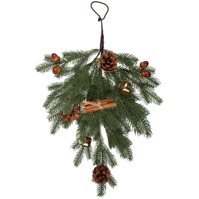 Рождественская ветка Vispera символизирует трепетное ожидание самых волшебных дней в году. Без такого красочного рождественского украшения не обойтись при праздничном оформлении пространства: особое настроение и атмосферность гарантированы!16 литых веток с украшениями из шишек, желудей, палочек корицы и золотистых бубенчиков.