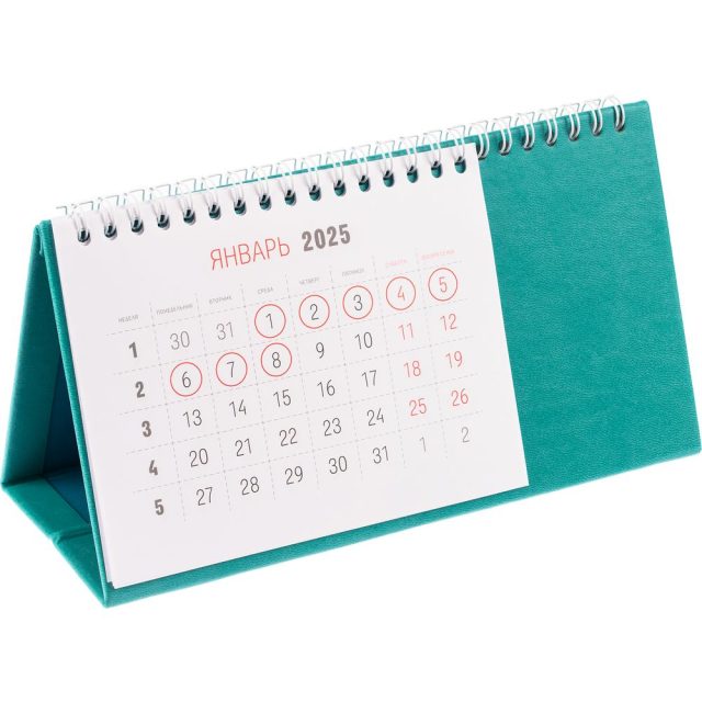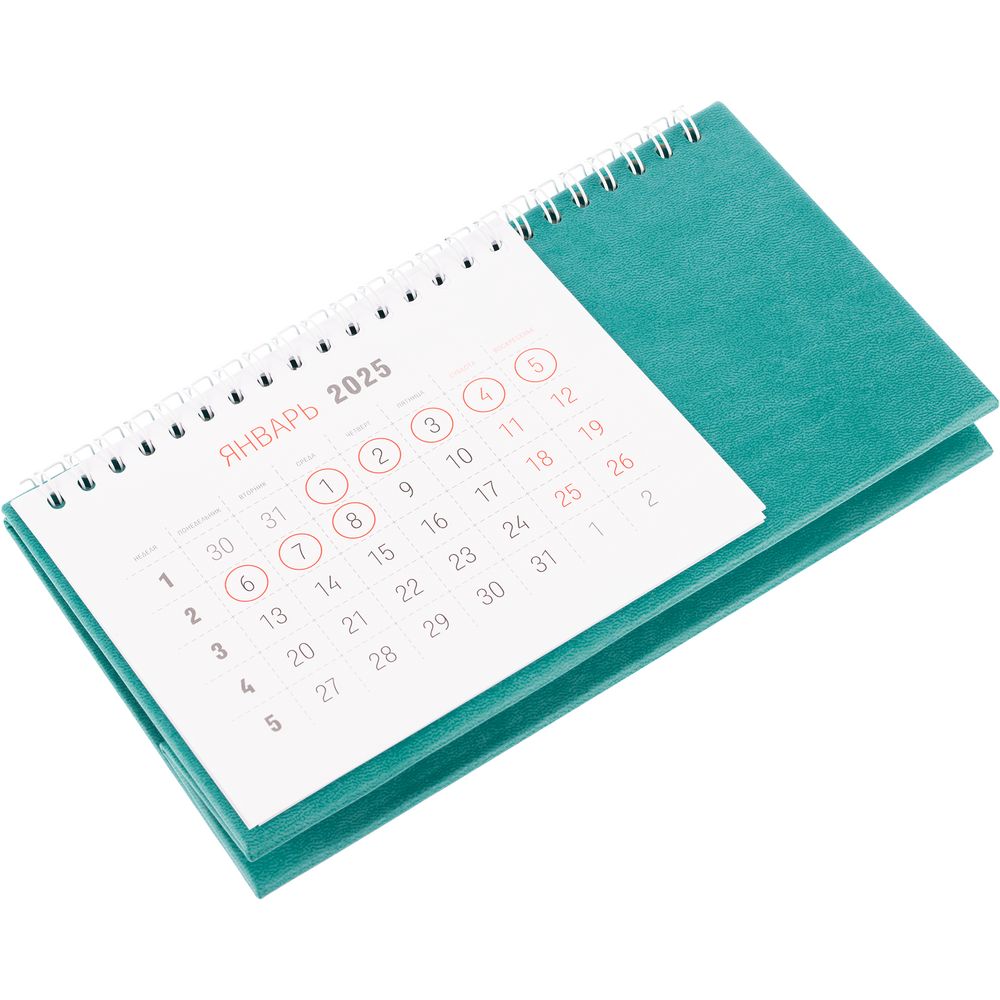 Настольный, перекидной календарь-домик выполнен из материала Latte, цвет морской волны II.