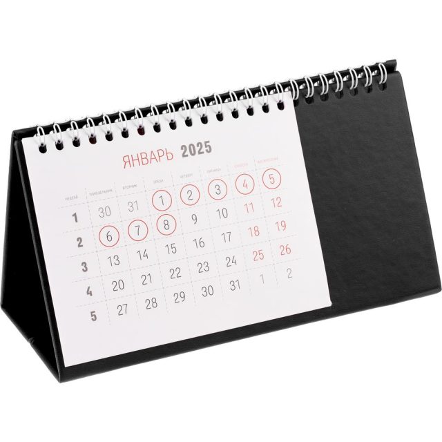 Настольный, перекидной календарь-домик выполнен из материала Latte, черный АА.