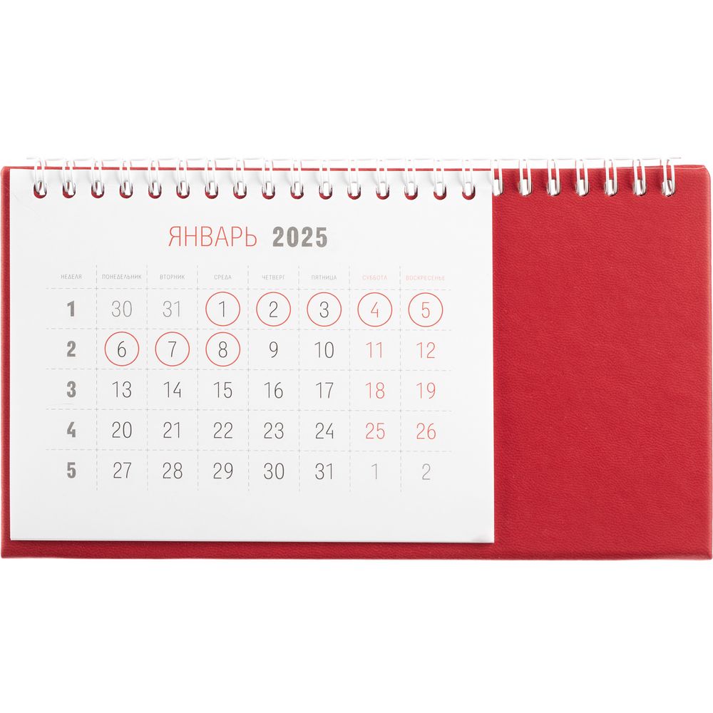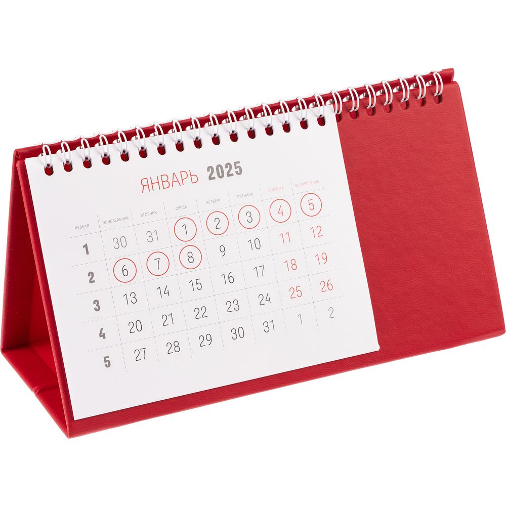 Настольный, перекидной календарь-домик выполнен из материала Latte, красный РР.