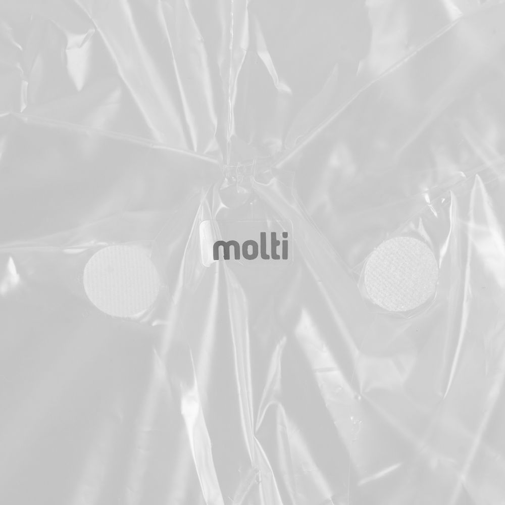 Логотип Molti может быть размещен на дождевике или упаковке. Варианты представлены на фото.