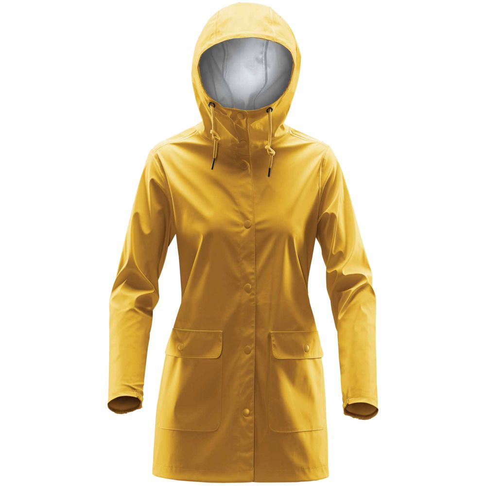 Стильный и практичный женский дождевик на кнопках из матового водонепроницаемого и ветрозащитного материала. Благодаря сварке ультразвуком швы абсолютно водостойкие. Карманы защищены от дождя накладными клапанами.