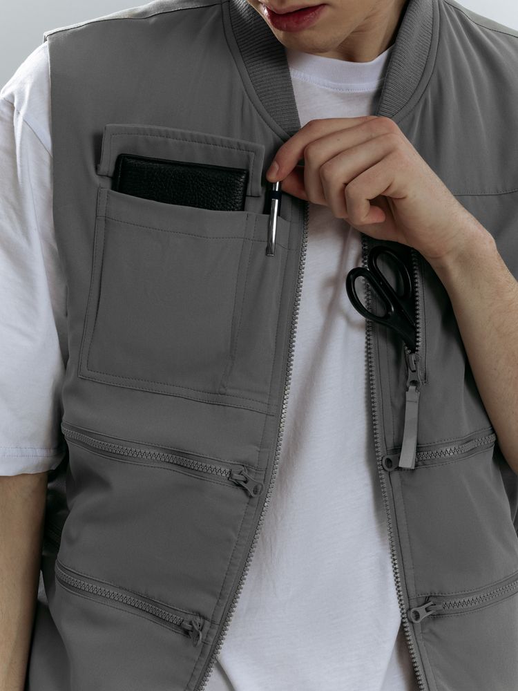 Комфортный жилет унисекс Hard Work обеспечит удобство и функциональность на каждом шагу. Жилет по праву можно назвать «рабочим» —для активных людей, путешественников и любителей приключений. Большое количество карманов позволяет взять с собой все самое необходимое, а светоотражающие элементы на передней и задней частях жилета позволяют быть заметными в темноте.