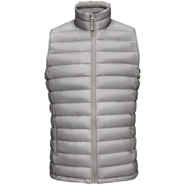 Мужской стеганый жилет облегающего кроя на молнии с воротником-стойкой.