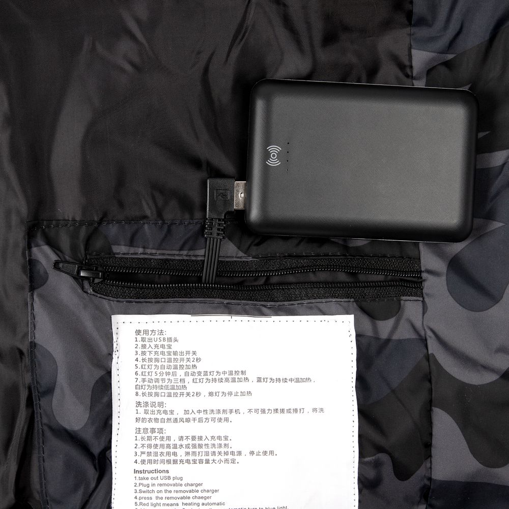Жилет со встроенным нагревательным элементом из углеродного волокна с девятью зонами нагрева в области спины, шеи и живота. Работает от внешнего аккумулятора (в комплект не входит), подарит ощущение тепла и комфорта в любую погоду.