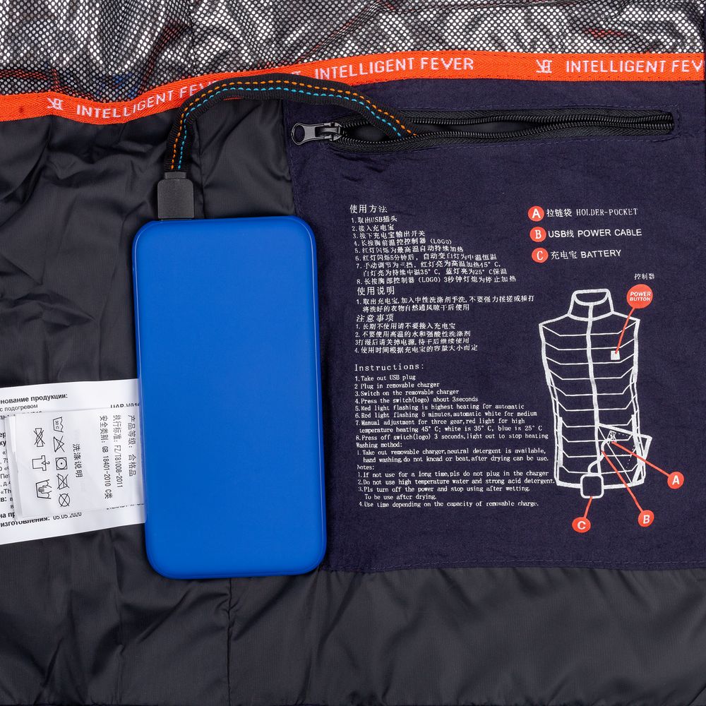 - Рекомендуем использовать внешний аккумулятор не менее 5000 мАч (для него есть дополнительный внутренний карман на молнии)