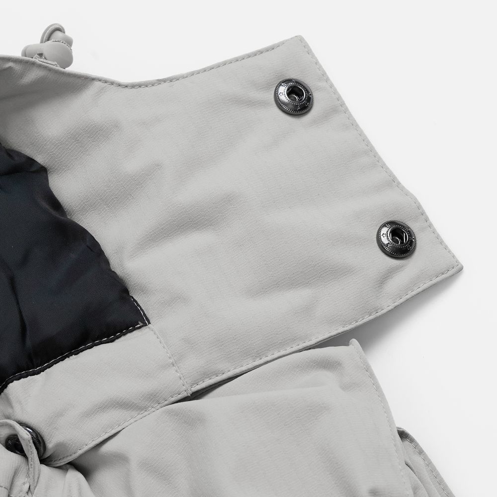 - Отстегивающийся капюшон с утяжкой и кнопками для плотного прилегания и защиты горла