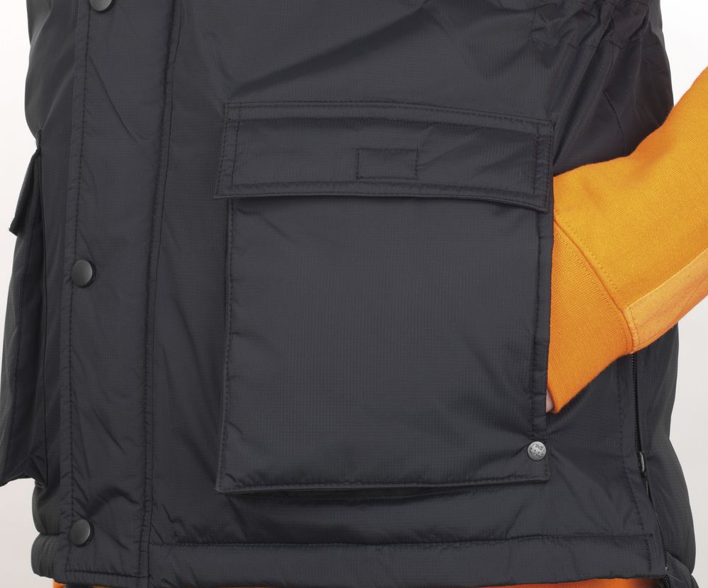 • Две молнии по бокам внизу для большей легкости движения, одна внутренняя молния на груди и одна — внизу жилета