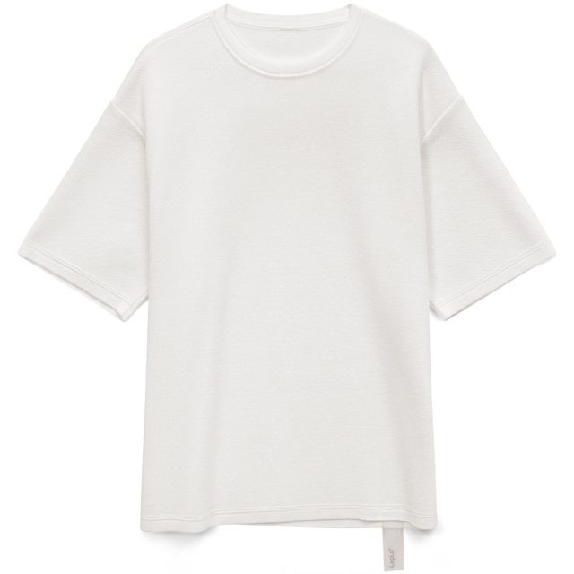Siluetti Volumica — плотный вязаный джемпер-футболка прямого кроя с круглым вырезом и спущенной линией плеча. Фирменная бирка из силиконовой ленты станет интересной деталью, привлекающей внимание на фоне общей лаконичности модели.