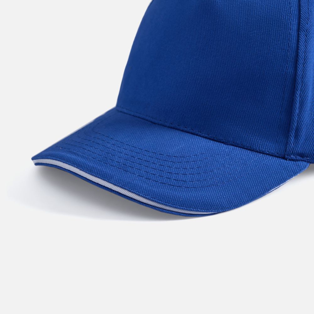 Модель бейсболки с 5-ю клиньями без лобового шва из плотного чесаного хлопка.