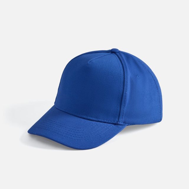 Модель бейсболки с 5-ю клиньями без лобового шва из плотного чесаного хлопка.