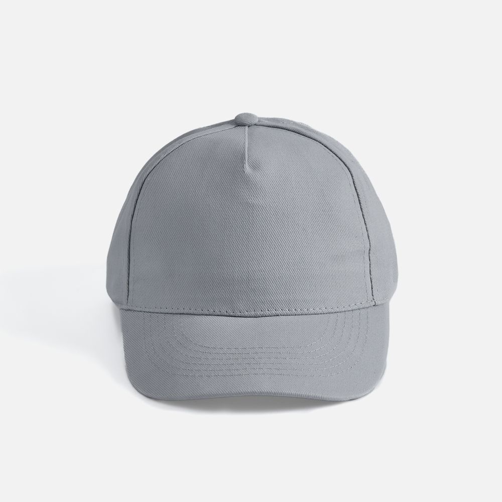 Модель бейсболки с 5-ю клиньями без лобового шва из плотного чесаного хлопка.