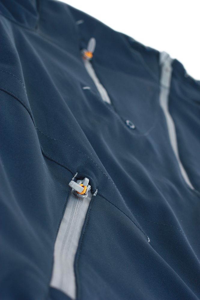 - Внутренние карманы на молнии, нагрудный карман с отверстием для шнура гаджета