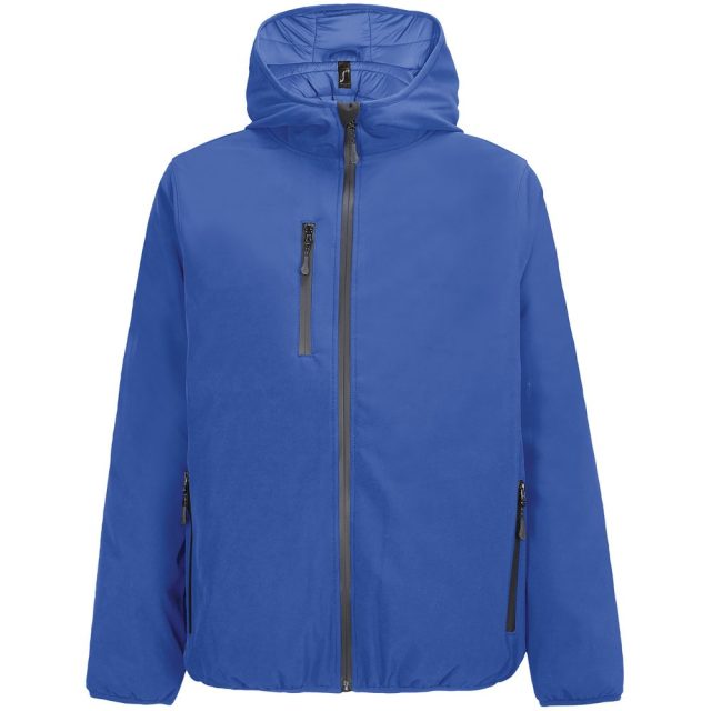 Мужская куртка софтшелл на молнии и с капюшоном.