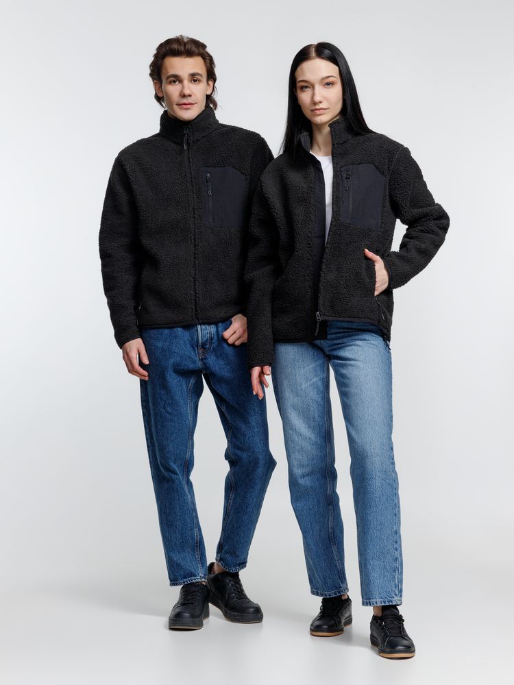 Куртка унисекс из фактурной искусственной шерпы с гладкой отделкой из таслана.