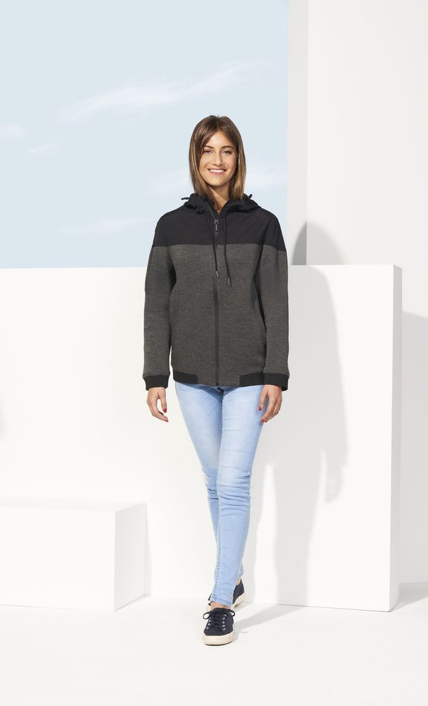 полиэстер, 83%; вискоза, 13%; эластан 4%; пике, неопреновое; плотность 380 г/м²; вставка и капюшон — нейлон 100%, таслан
