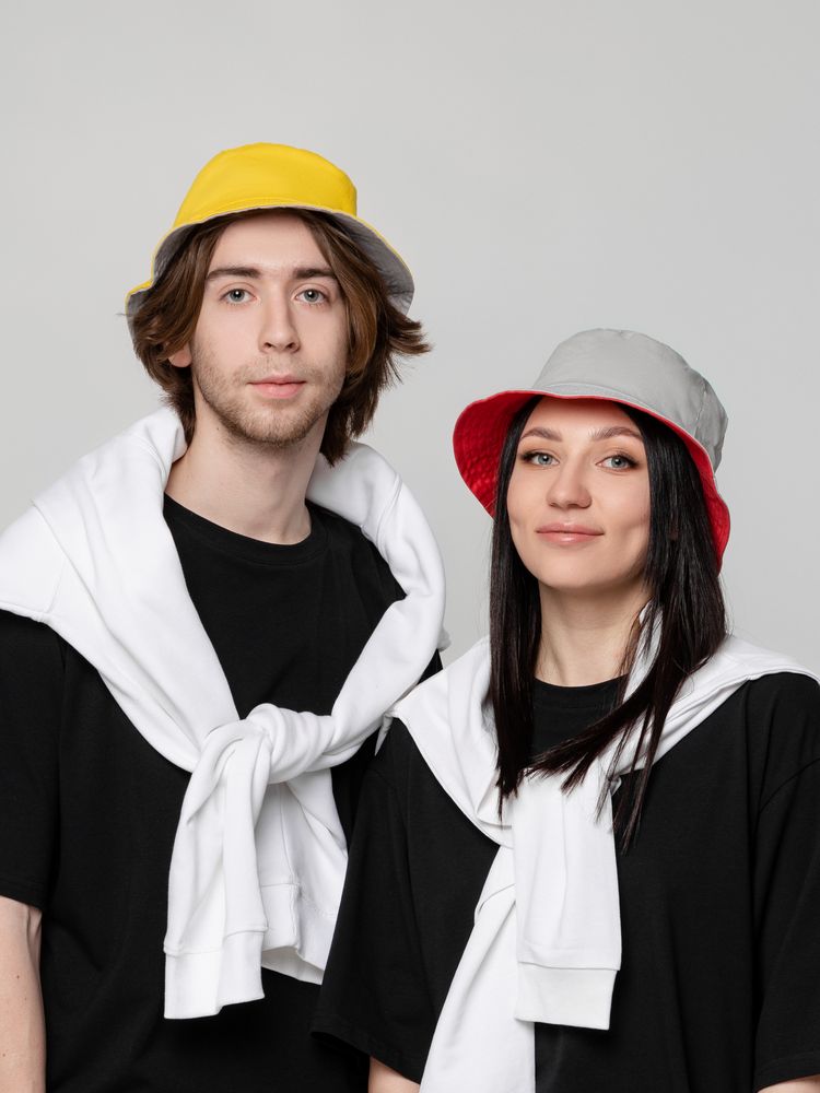 Панама Summer двусторонняя, желтая с серым