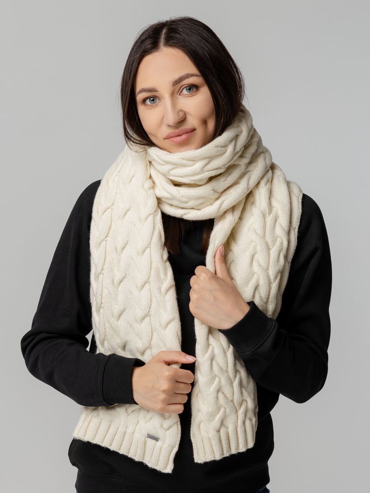 Длинный фактурный шарф — классика, которая не устаревает. Такая модель добавит уюта и шарма в зимний образ, станет его притягательным акцентом.